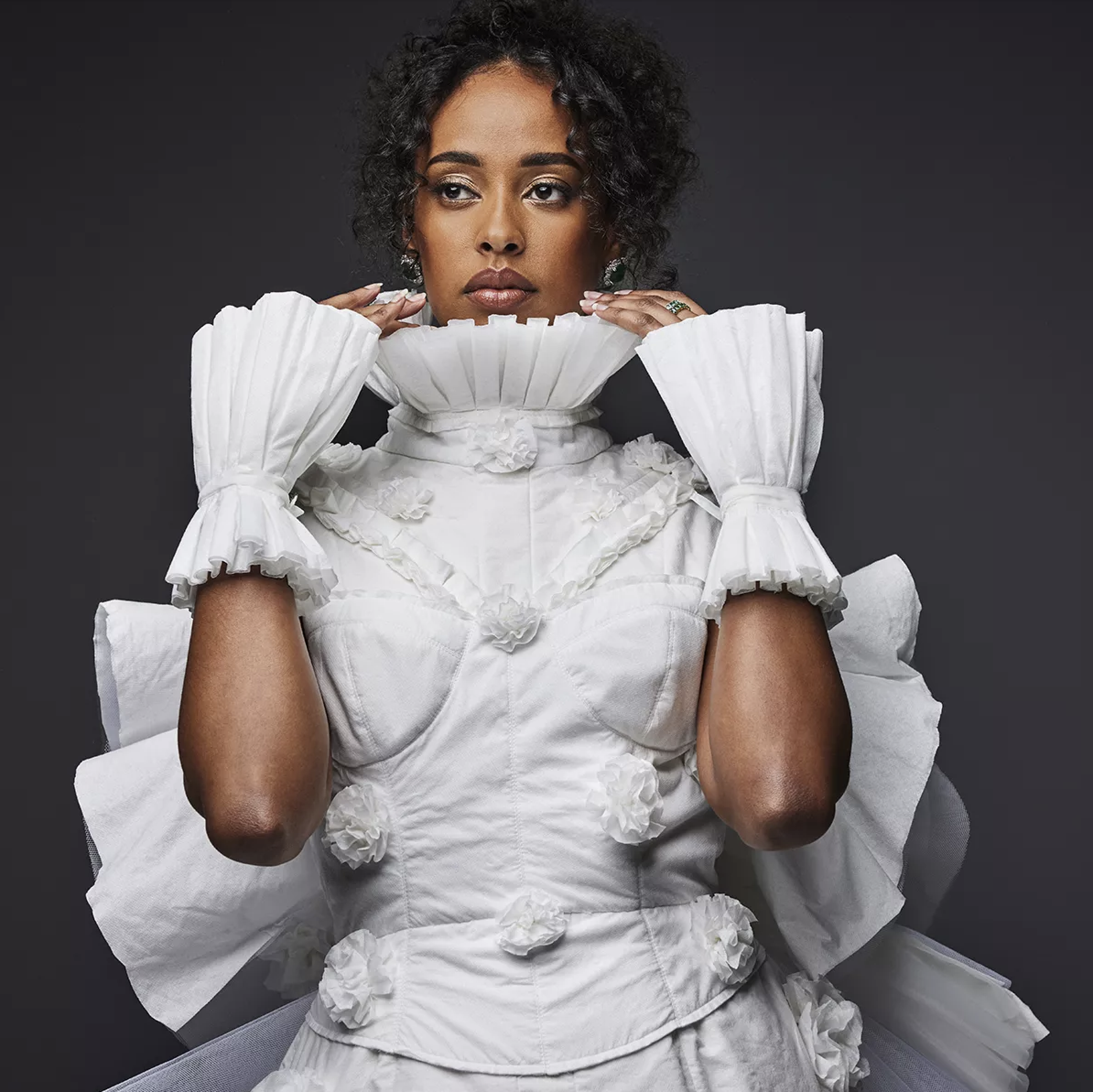 A. With bespoke craftsmanship, each garment is shaped through thoughtful design and meticulous fittings rather than mass production. This intentional process ensures precision, reduces waste, and results in couture pieces defined by purity of design and impeccable fit.