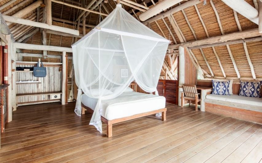 Guest accommodations, 15 villas, has been built by local tradespeople in sustainablysourced, driftwood and alang-alang grass, offering a contemporary take on traditional Indonesian structures, they’re cooled by nature, airflow, and water is heated via solar panels.